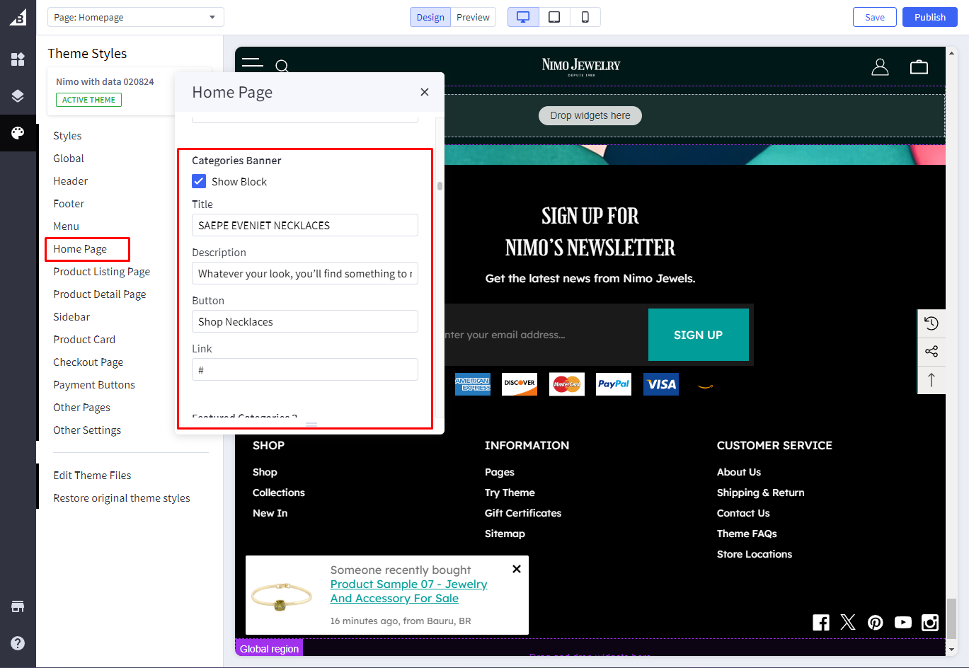 Go to **Storefront** -> **My Themes** -> **Customize**. <mark style="color:red;">(If your store is a new store, you may need to go to</mark> <mark style="color:red;"></mark><mark style="color:red;">**Channel Manager -> Themes -> Edit Theme**</mark><mark style="color:red;">)</mark>