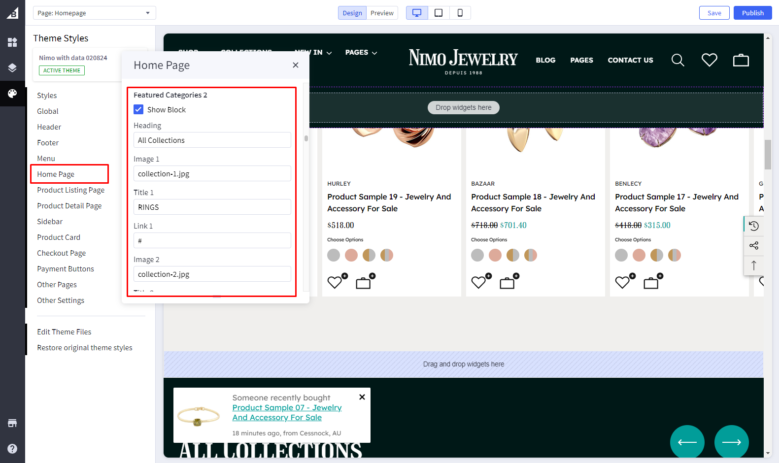 In the **Theme Editor** -> go to **Home Page / Featured Categories 2**