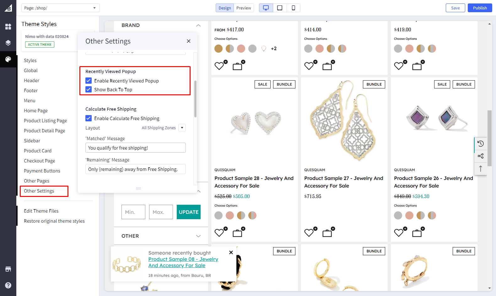 In the **Theme Editor** -> Go to **Other Settings** -> **Recently Viewed Popup**