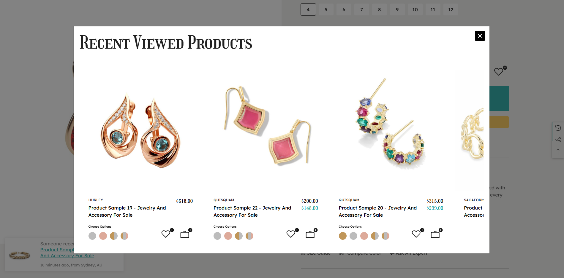 # Recently Viewed Popup