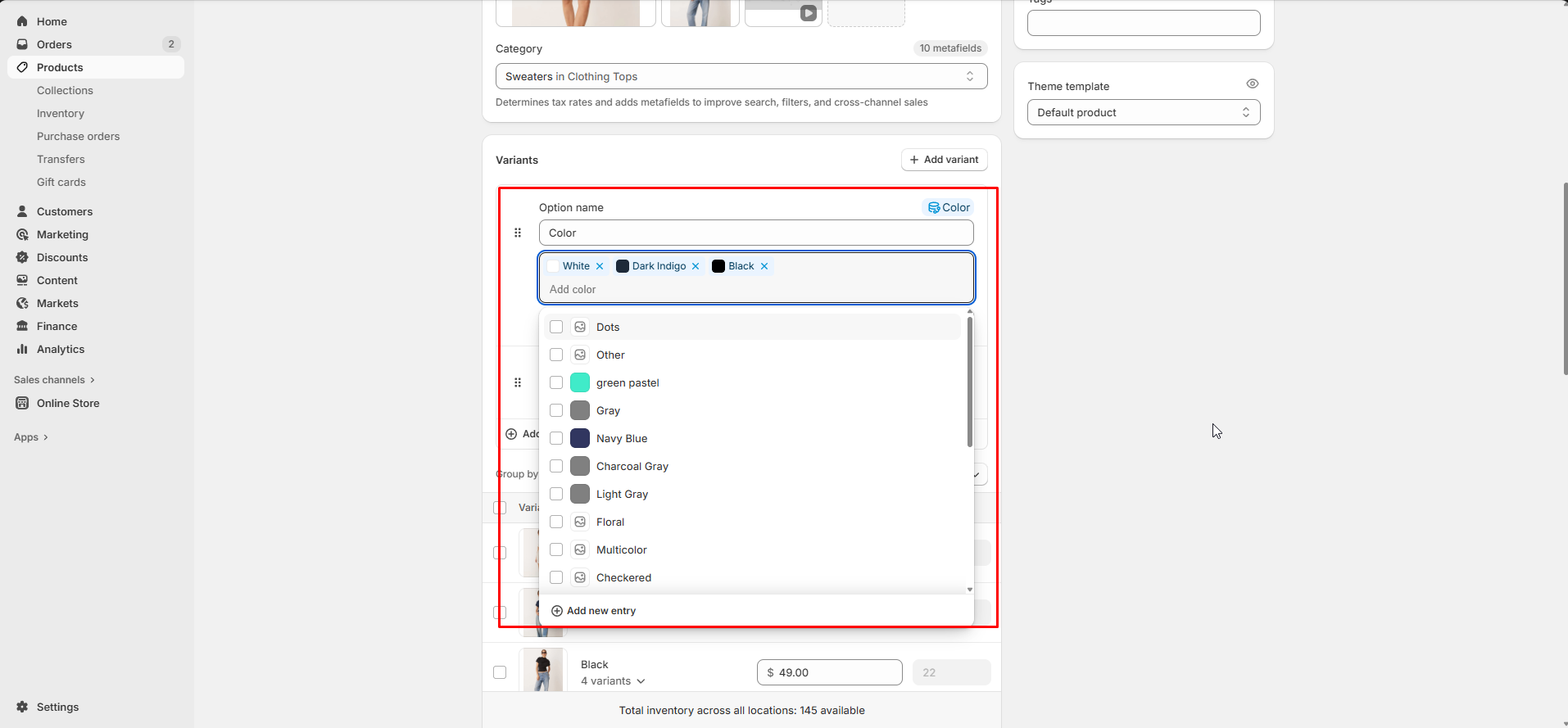 6. Optional: If you want to add custom option values, then click **Edit**, and then click **Add new entry**. Fill out the entry fields, and then click **Save.**