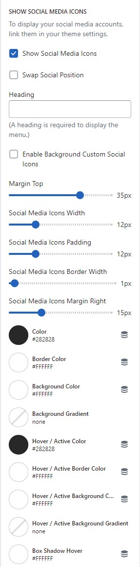 * At the bottom half of the settings, there are also settings for Social Media icons. Enable or swap the position with the newsletter as you prefer.