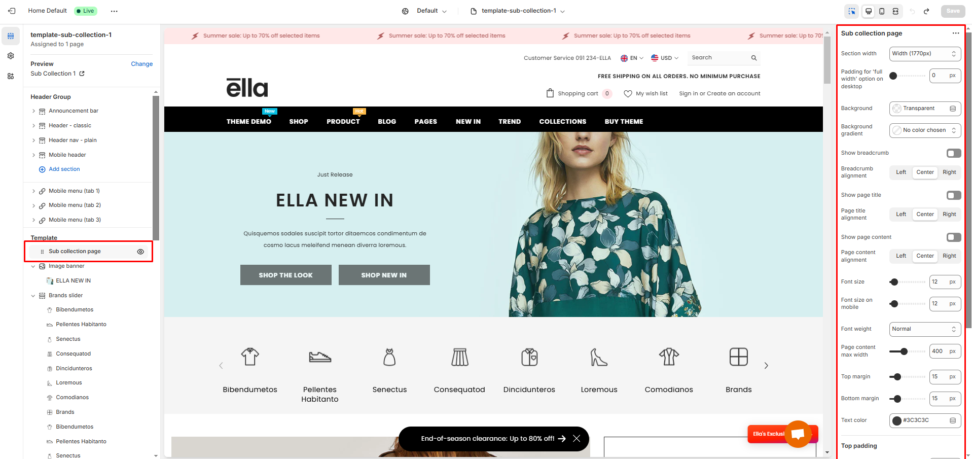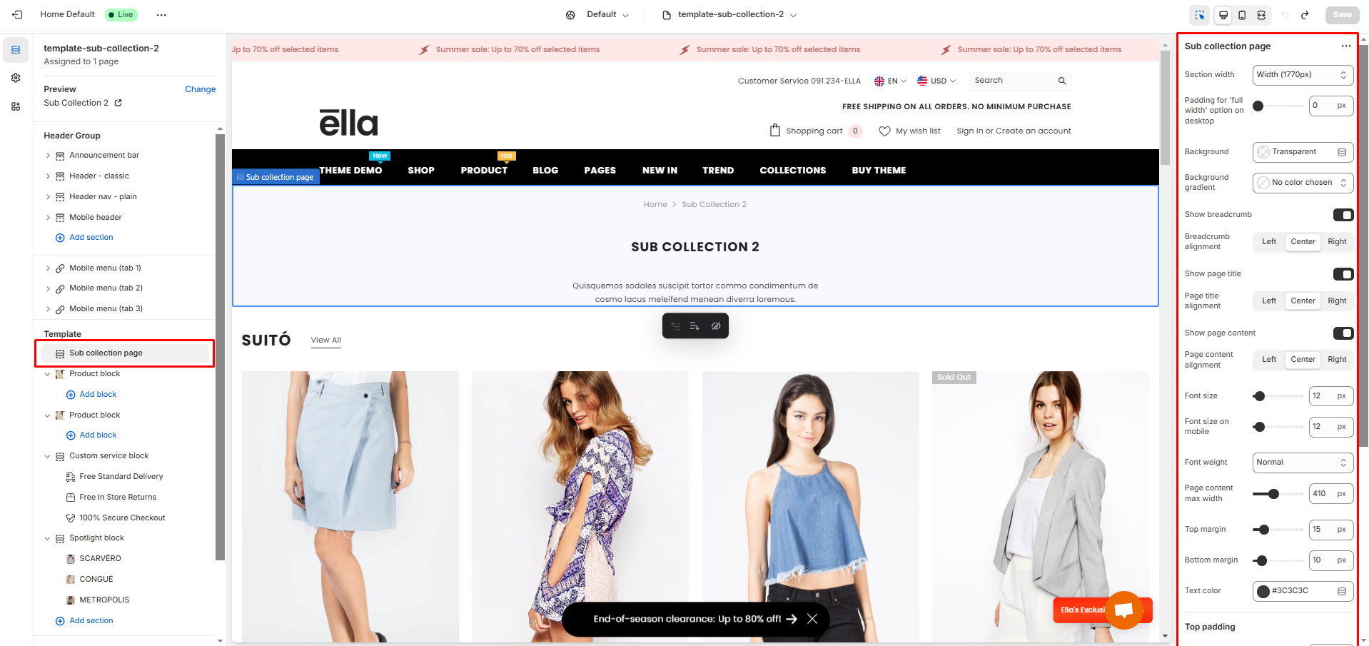 Ella Theme offers **Collection Detail Page** as a landing page.