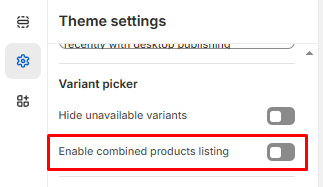 4. Scroll to **Variant picker** and choose **Enable combined products listing**