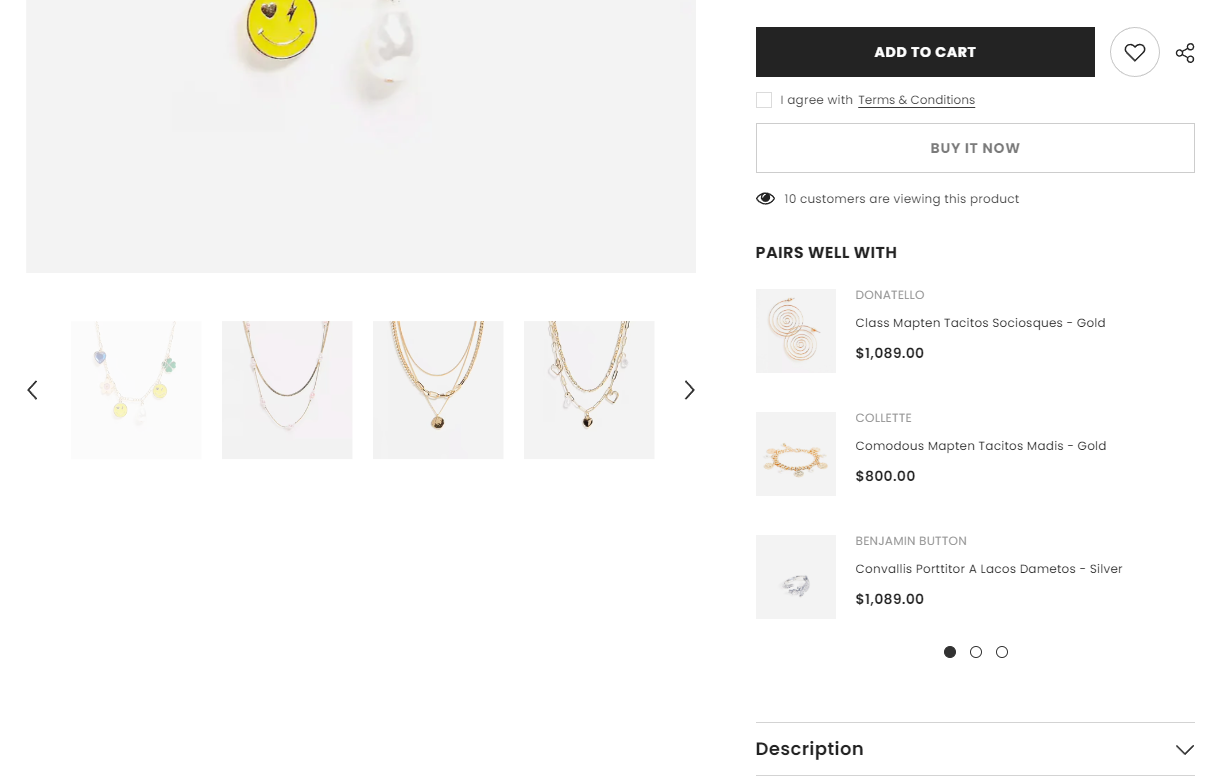 Using the [Shopify Search & Discovery](https://apps.shopify.com/search-and-discovery) app, you can choose specific products to display as complementary products in the product information section on your website's product pages.