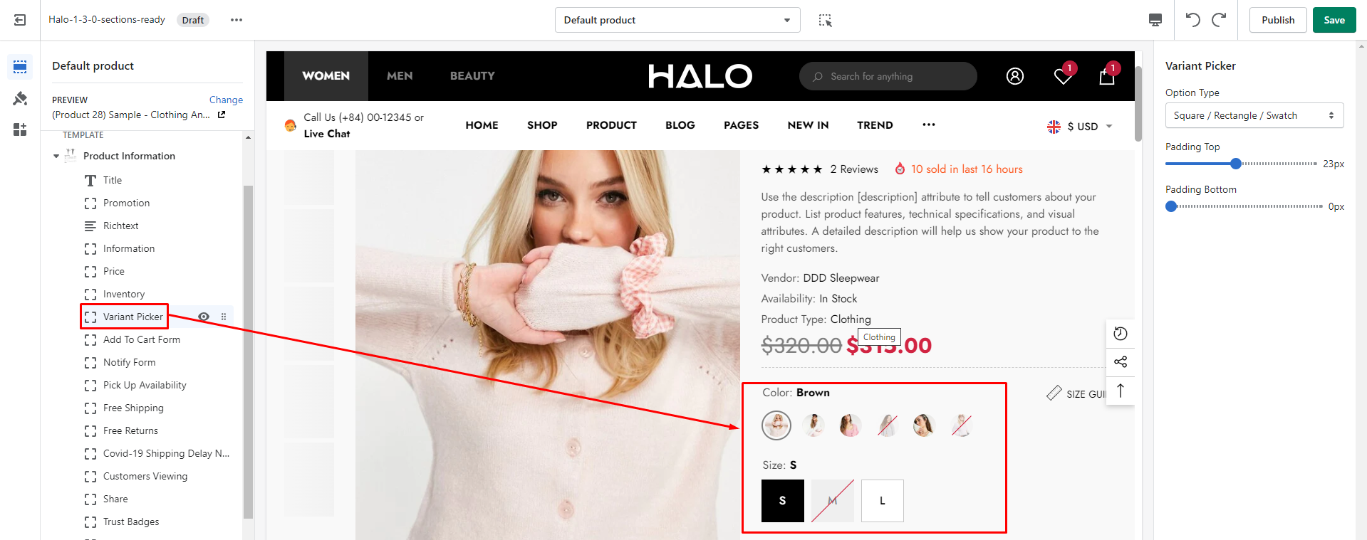 To add **Variant Picker**, please follow below steps: