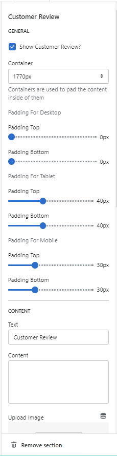 3. Click **Add section** and choose "**Customer Review**".